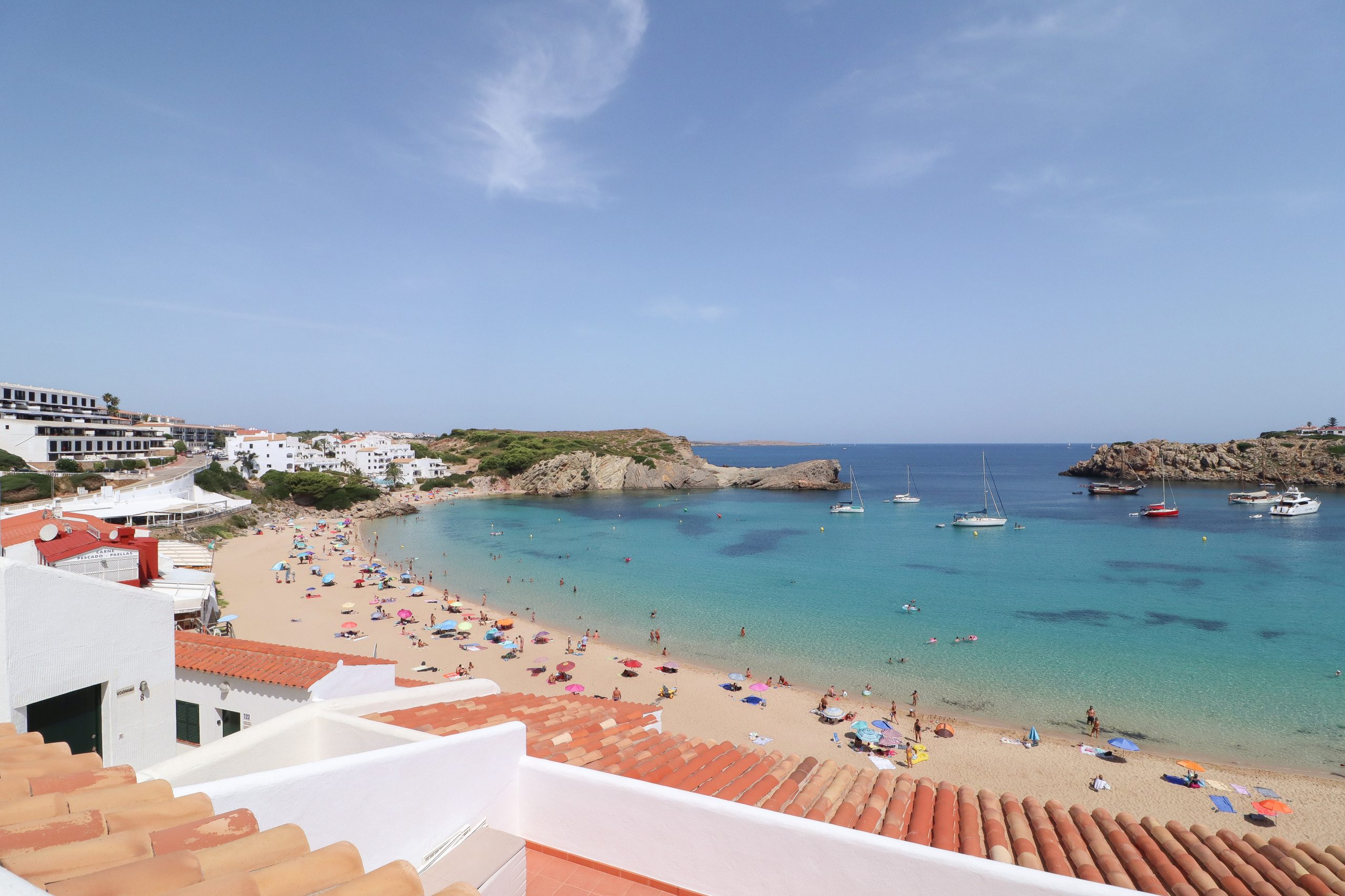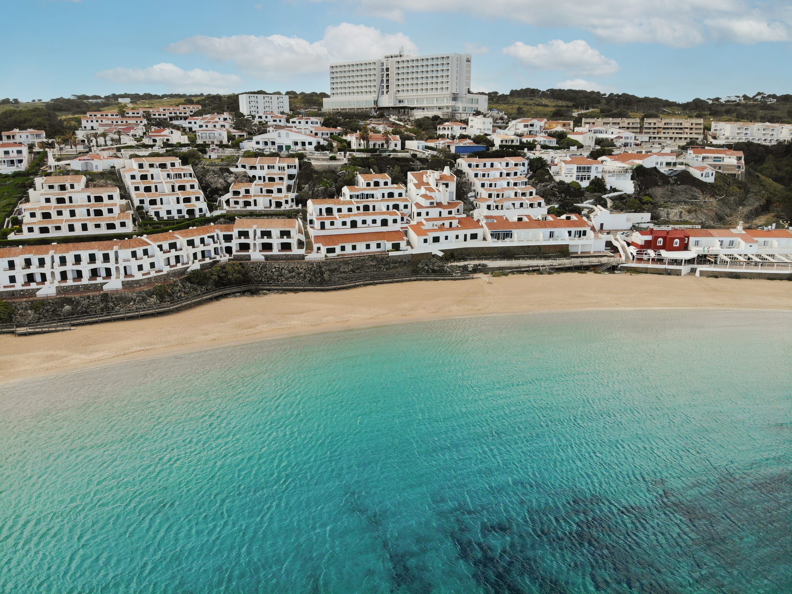 All the amenities (such as bars, restaurants, children’s playgrounds, cafes etc.) of this popular resort are within a 10 minute walk including pedestrian access to the resort’s beach. The airport is a 25 minute drive away, as is the beautiful and historic capital of Mahon.